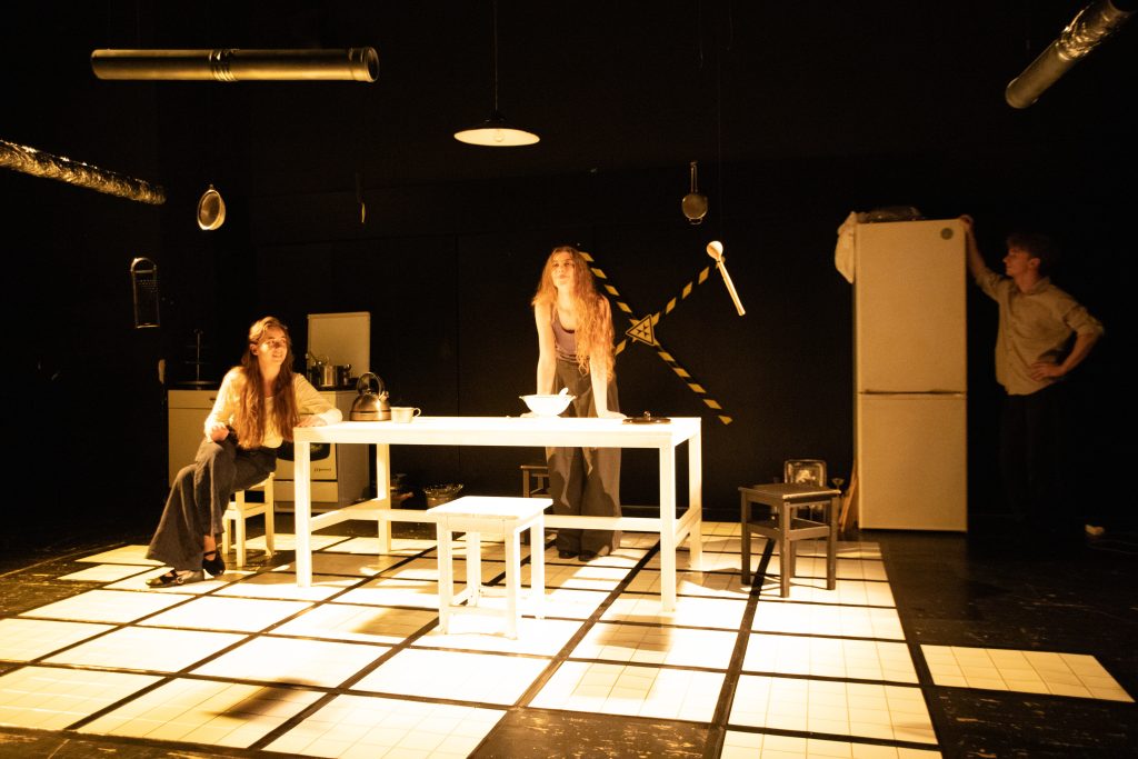 Kuchnia – najbezpieczniejsze i najbardziej niebezpieczne miejsce jednocześnie. W kuchni siedzi rodzina: ktoś ostrzy nóż, ktoś pakuje walizkę, ktoś udaje, że nic się nie dzieje. A w szafie już szeleści karaluch… Nie metafora, nie bajka, ale absurd rzeczywistości, w której żyjemy: gotujemy obiad i biegniemy do schronu, śmiejemy się z memów i płaczemy nad listą zabitych, włączamy TikToka i zostajemy bez prądu podczas ostrzałów.